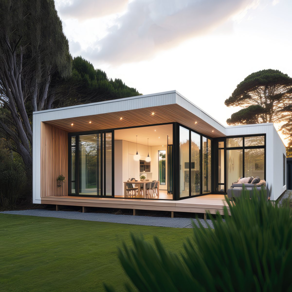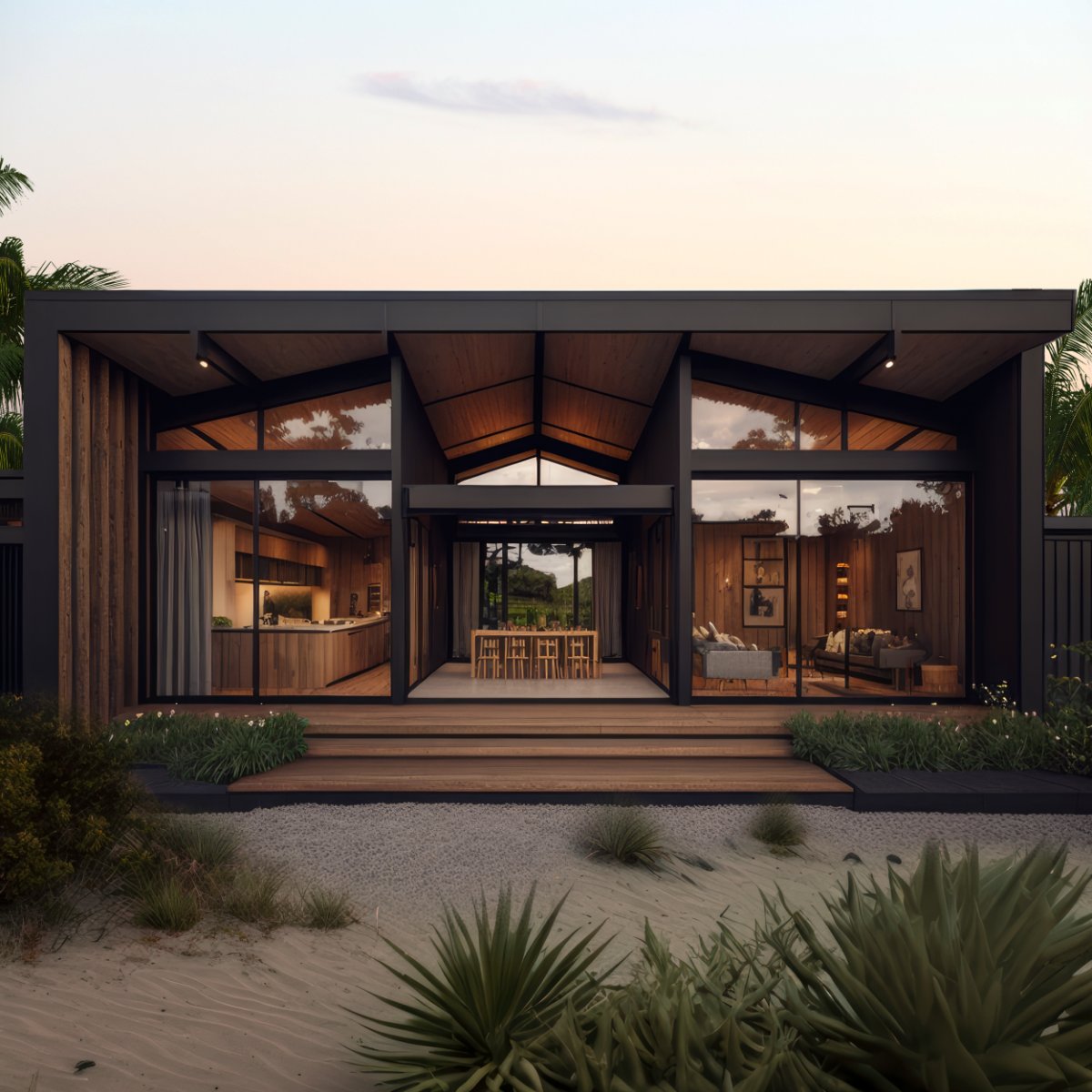 This small, modern gable roof home is designed with style and functionality in mind. The 'L-shape' layout features two bedrooms and high ceilings, creating a bright and spacious feel. The light colour exterior is accented by stunning dark joinery, adding a touch of sophistication to the design. A study nook provides a quiet space to work, and a separate laundry room adds convenience. The living area features large bifold doors, providing a seamless connection to the outdoors, and an optional bar adds to the entertaining possibilities. With its mix of modern and traditional elements, this timeless design is sure to be a classic that will stay in fashion.